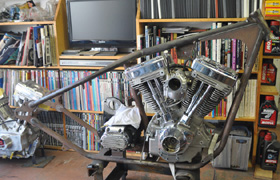 チョッパーの歴史、時代背景、当時のカッコイイ映像とかをWCCのジェシー・ジェームス氏が1台のバイクを作りながら、説明してくれます。