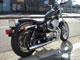 スモールタイプのXLタンクに変更。ブラックに塗装し、シンプルに「Harley Davidson」とレタリングをいれてます。マフラーはサンダーヘッダー。プログレッシブのサスペンションでローダウンしました。さらっとつぼを押さえたカスタムです。