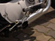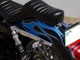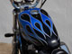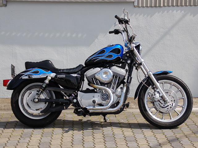 05年のスポーツスターはラバーマウント構造になっており、2本出しのドラッグパイプはエンジンと一緒に動く様になっています。フレームスキットを備えており、ターンアウトしたマフラーエンド部分は、火を噴く仕様にしています。