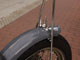 74スプリンガー、マスタングタンク、スカイハイバー、サイクルフェンダー、ワンオフで作ったシーシーバーと定番的パーツで構成。48年レプリカフレームを使用しており、鋳造で作られた各部のラグがノスタルジックなテイストを漂わせます。オーナー自身が考えたトライバル的グラフィックをタンクに、3inchプライマリーベルトにはレタリングを描いて遊んでみました。
