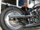 最初は大柄なスタイルだったものを、軽くするイメージで外装を変更しました。タンクには、電気式ミニメーターを埋め込みタンクキャップは、ポップアップタイプを使ってスムーズな仕上がりになってます。リアフェンダーは5インチのフラットフェンダーに一体型のフェンダーサポートを作ってます。ペイントは、ガンメタベースのマーブライザーに赤と白のピンストライプをフレアーで描いて高級感とワイルドさをミックスしました。
