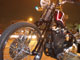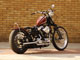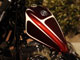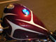 ガスタンクは、スポタンをナローにモディファイし、ミニメーターを埋め込みました。渋めの茶のような赤のような色をベースにフレークでキラキラ仕上げ、ホワイトパールのスキャロップを効かせました。底もフラットに張替え、ピンストで遊んでいます。2人乗りも出来るようにフラットフェンダーは少し長めにカットし、