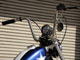 ハンドル周りは、グリメカマスターシリンダー+ミニスイッチ+配線中通しでシンプルに。FATECH製グリーサーバーの中央には、Buell純正のタコメーターが鎮座しています。白いパネルの中で赤い針が、エンジンの回転数を指し示します。