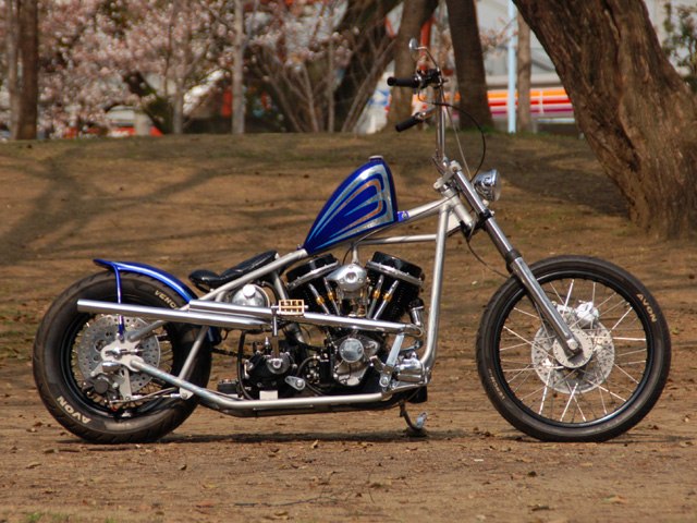 腰下SHOVEL×腰上PAN。エンジンのレイアウトが純正にはない特徴的なルックスの1台です。