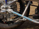 パウコのリジットフレームを使用。リヤ部分に斜めの補強パイプを入れ、走りを意識したテイストを盛り込みました。黒くペイントしたエンジンを際立たせる為にフレームは艶消しシルバーでペイントしています。