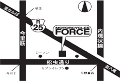 改札を出て右手の階段を降りる。大きな通R25まで出たら右折。5差路を日産を右手に見て松虫通りを500m |